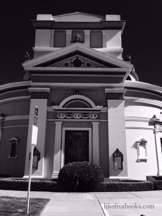 The stern neoclassical building looked distinctly out of place in the pastel-hued residential neighborhood.